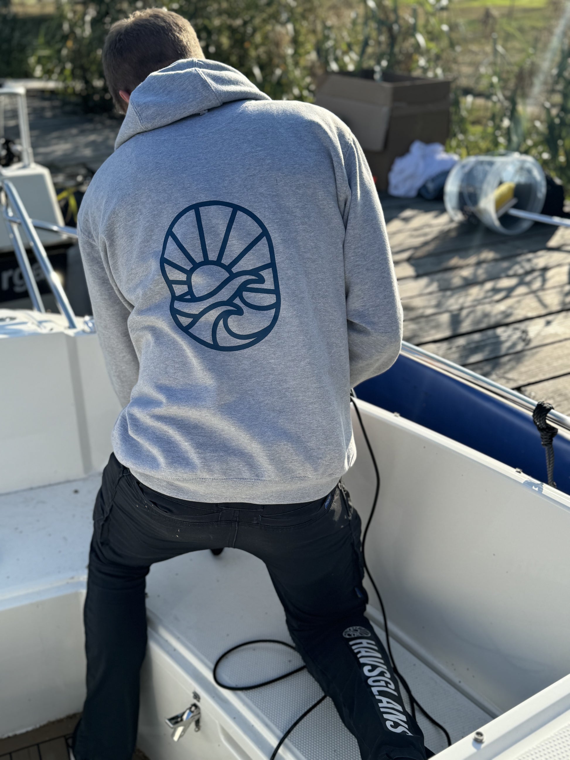 Din båt är din stolthet, och när du drar på dig din Havsglans-hoodie vet alla andra det också. Hoodien är både stilren och ruskigt bekväm, med en liten Havsglans-logga på bröstet och en stor ikon på ryggen. Oavsett om du är på sjön eller land, håller den dig varm och bekväm utan att kompromissa med din stil.
